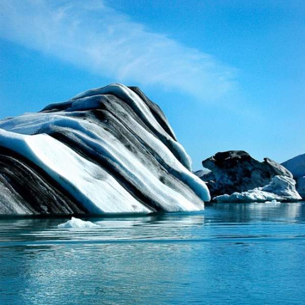 Icebergs in the Antarctic area sometimes have stripes, formed by layers of