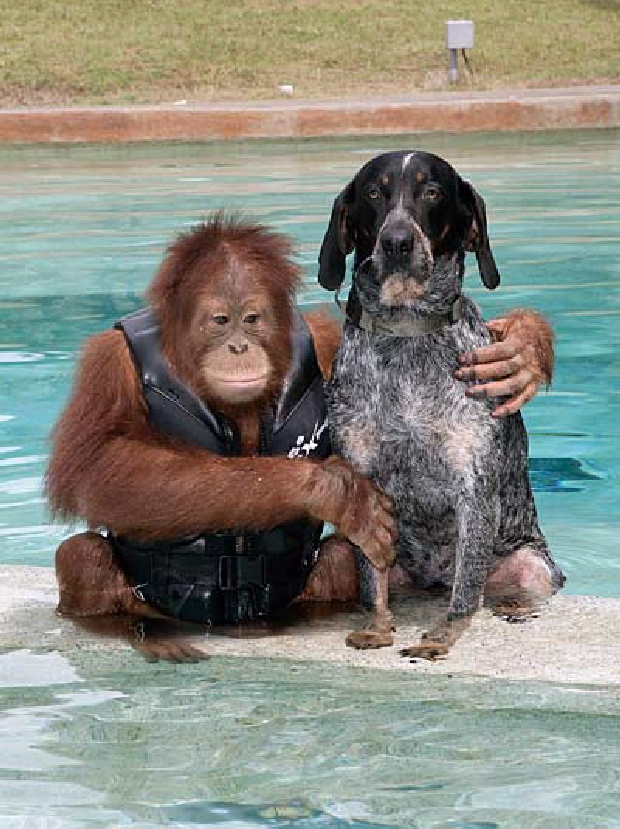 A dog's not just a man's best friend, he's an orangutan's too.