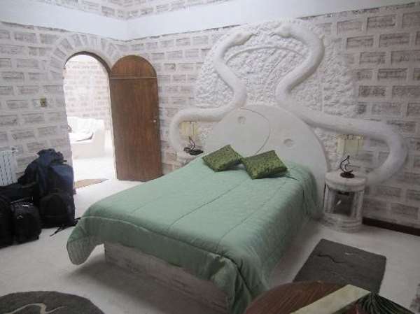 The hotel is made of about 1 million 35-cm (14-inch) salt blocks, which were used for the floor, walls, ceiling and furniture, including the beds, tables,