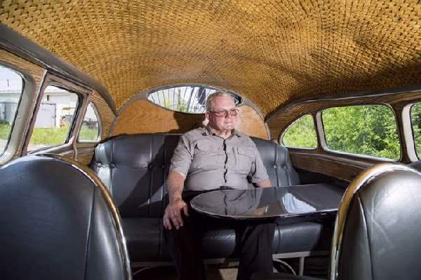 Will Schneider, of Milwaukee, shows off his 1936 Stout Scarab, a model often