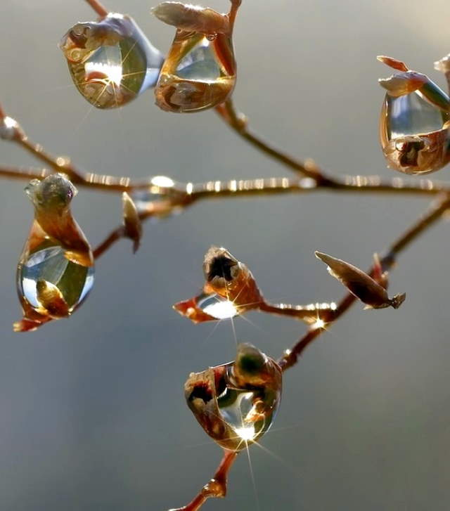 These pretty brilliant macro photos of water drops were taken from plants just after a rain. Enjoy! :) |